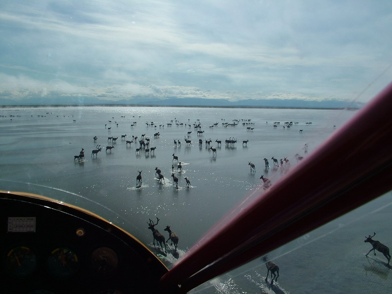 Deadhorse. The carribou will wade out a couple miles to the sand