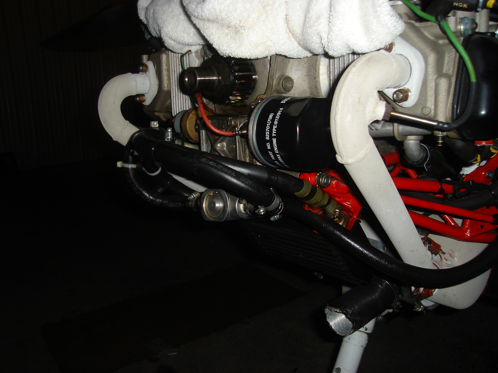 A few days ago, Hugh McKay emailed to remind me that I had not posted photos of the oil thermostat we installed on our Allegro. I apologize for this oversight. After receiving Hugh's gentle reminder, I went to the hangar to take photos of the oil thermostat. Unfortunately, I only got two photos of questionable quality, before my batteries died. I did not even have enough battery juice to see if they came out okay until I got back home.