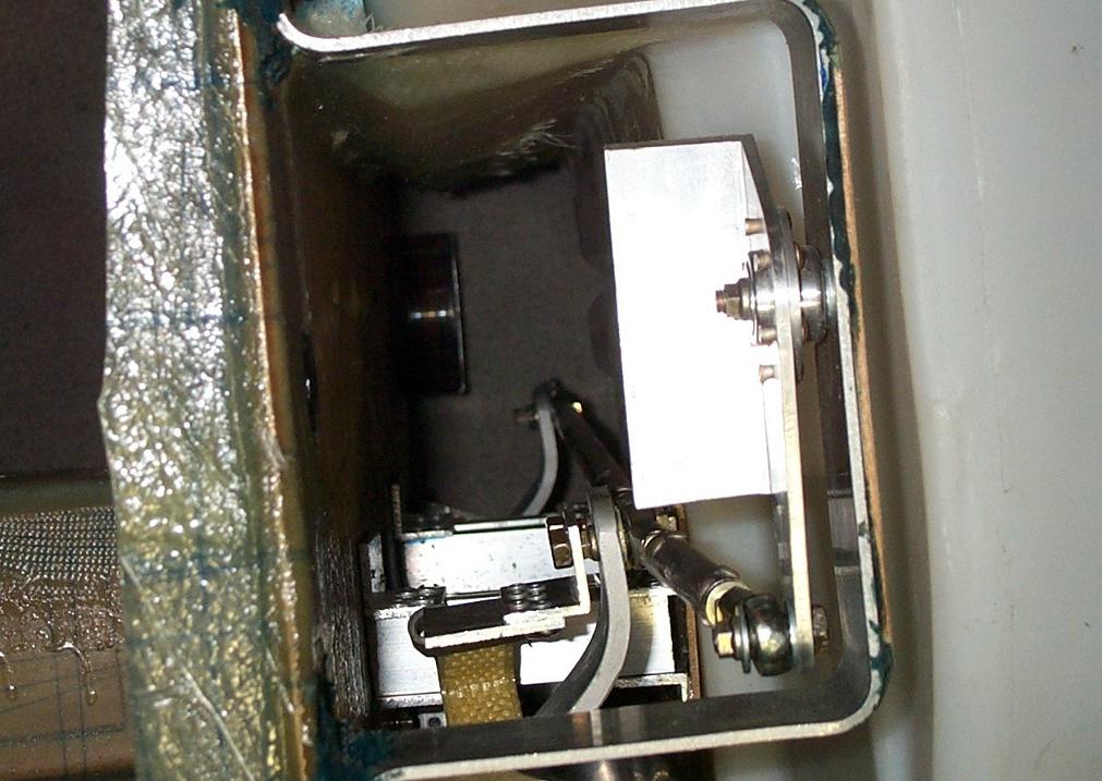 This is a knock off of the COZY canard trim, modified to suit. It attaches to the push rod arm on the existing bolts