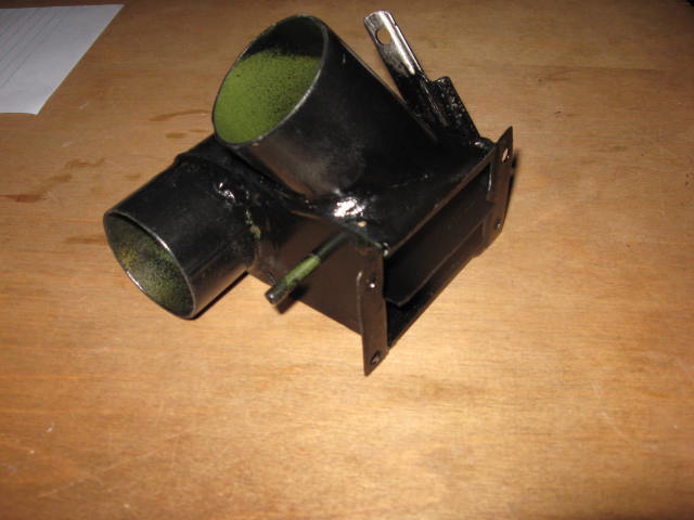 The Valve on the firewall is a simply flapper type air diverter valve that opens and shut via a cable on the panel. it diverts the hopefully warm air either into the cabin or out thru the round outlet pointed down to exit thru the bottom of the cowl. I fabricated this myself from mild steel sheet and brazed it together. It is kind of a copy of other aircraft diverter valves I have seen in the past.