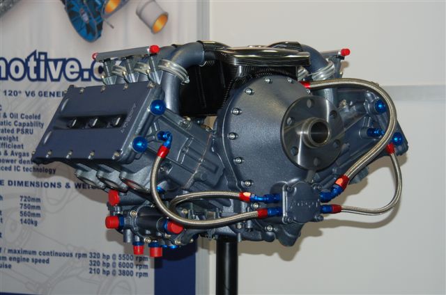 Turbocharged, 320hp at 5500 rpm, 70% 210hp at 2300 rpm, Integrated PSRU, Liquid cooled, Compatible with Avgas OR Mogas, FADEC, 130kg (287lb).