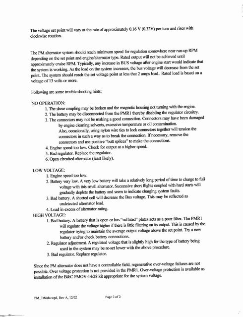 Brian, Jan is telling me that the B&C Perm Mag system will not output from the voltage regulator without a battery present. Can you figure that out? It is news to me.