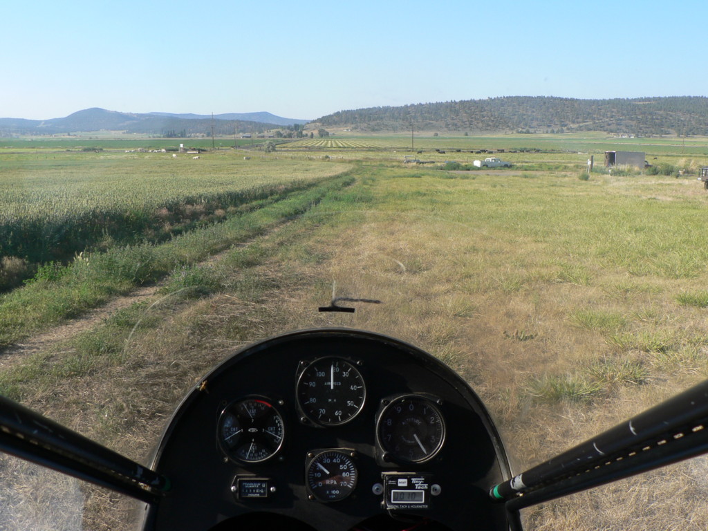 Here is a picture taken just before launch from my brother's place. His house and trees are behind me, so it is one way in and out. Made aprox. 10 landings over two days visit last July. Field elevation is 4100'. I had to use my new brakes once on day two with a tailwind.