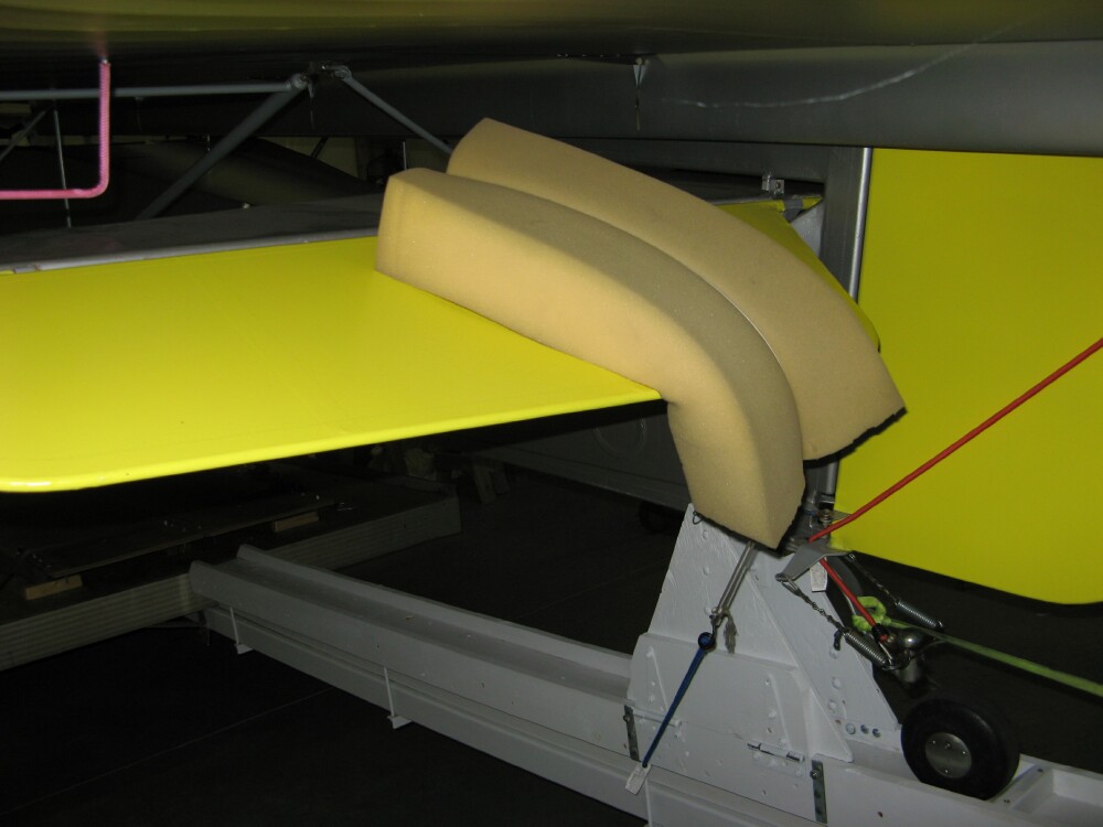 I missed that bit out! I put a broad strap around the fuselage (just forward of the tail plane) and the guide rail for the tail wheel. I do it up snug but not too tight so the tail still has some give on the tail spring. I figure in the event of a tail spring breakage that will prevent the aircraft rotating forward over the main wheels. It can't move forward or backward on the trailer due to the tiedowns on the mainwheel axles.