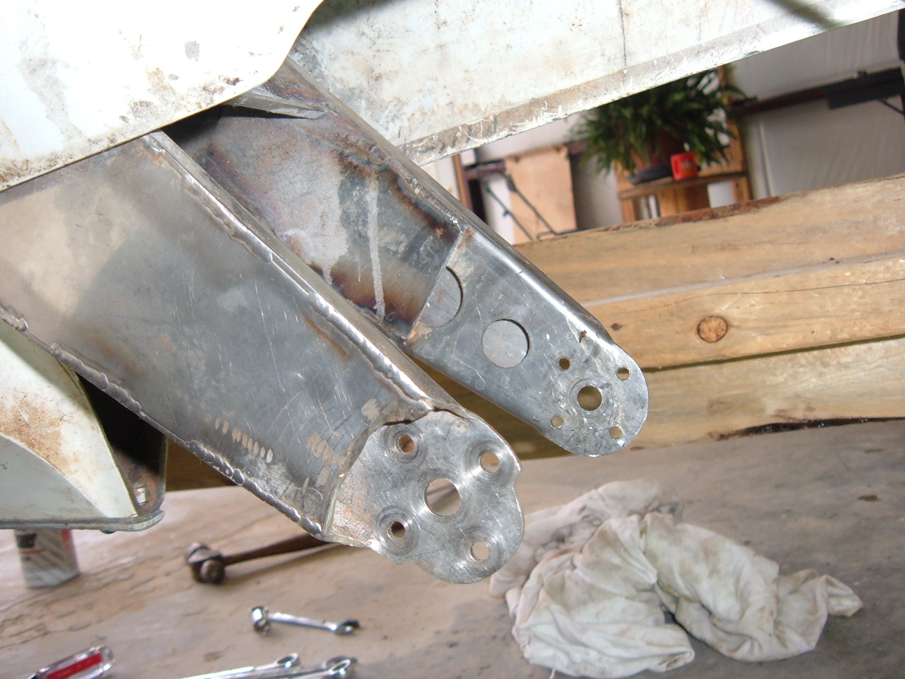 I took apart the right main and looked close at how it is constructed. They were originally the c channel with the lightening holes like the ones that failed in the pictures. the guy that I bought them from said that he had beefed up the mains, but it didn't mean much to me then, so I just let it go. Now I see that he welded a SS plate to the web of the channel, making it twice as thick, and welded a SS plate to the legs of the channel to turn it into a box shape. This is different than I had said before, so I just wanted to correct myself. I am adding a pic to better explain it.