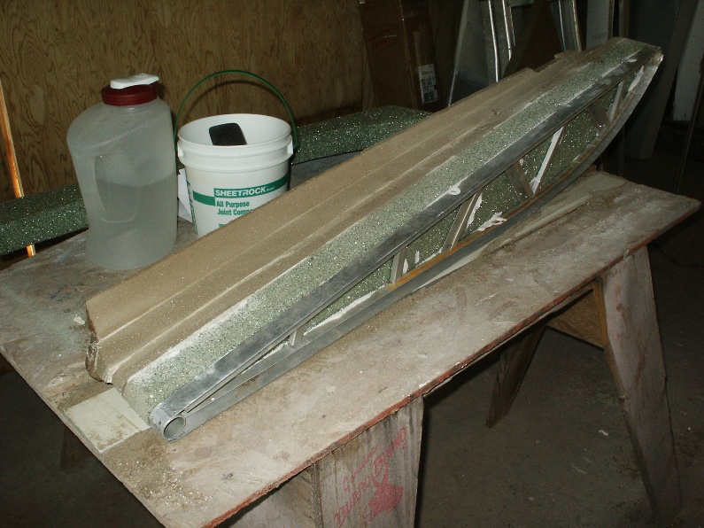 The first few photos deal with the shaping portion. I think it is the first photo that shows how I made Magic Marker lines to show the contour lines.The last couple reflect the PVA coating on the right tip. (The left one already has the PVA coating, and two coats of gel coat).