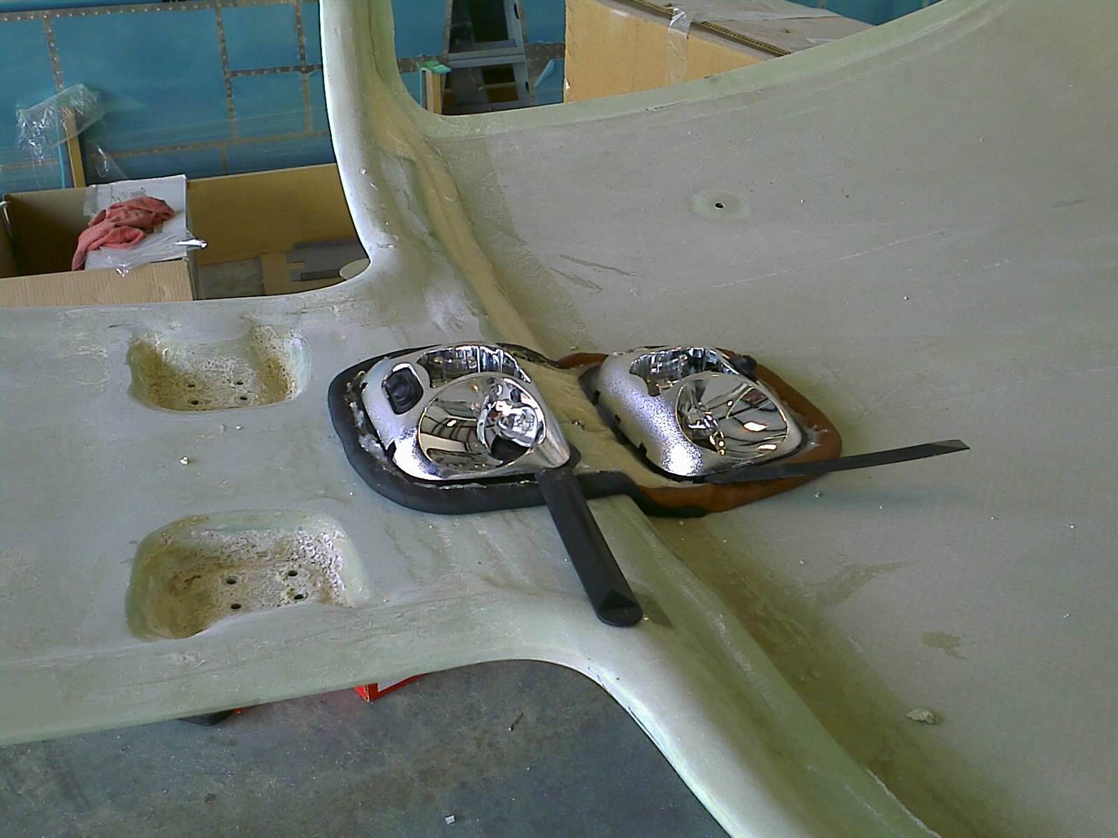 Then dremeled out contours for the bottom of the reflectors as well as wire runs.