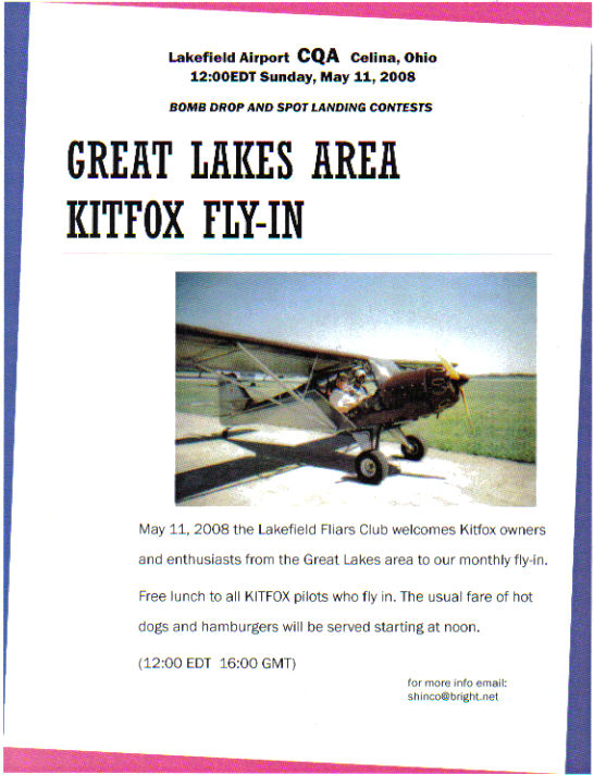 Great Lakes Area Kitfox Fly-In,When?Sunday May 11th,2008,at 12:00pm