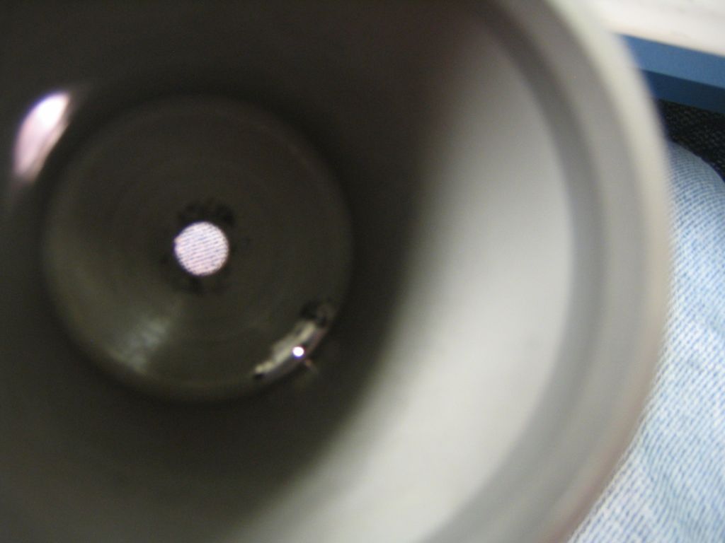 Before the corrosion got all the way through, the inside of the bowl had a small, shiny, unanodized patch where the corrosion started. The outside looks perfect except for a small black speck where the hole comes through.