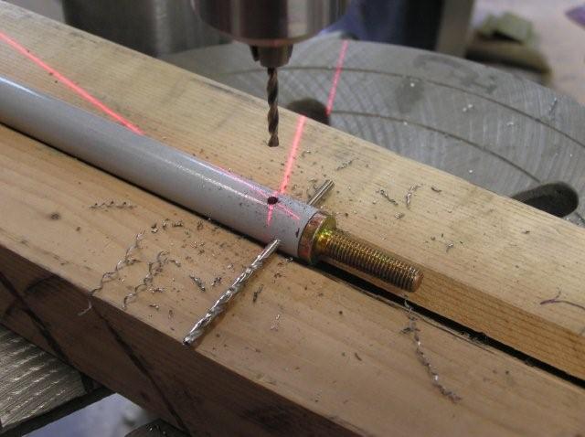 Here is what I did to get 4 perfect rod ends: - First I made a V channel holder (see P1010015.JPG) as suggested by Carl. This I aligned on my drill press so that the drilled would always go through the centerline of a tube and clamped in place.