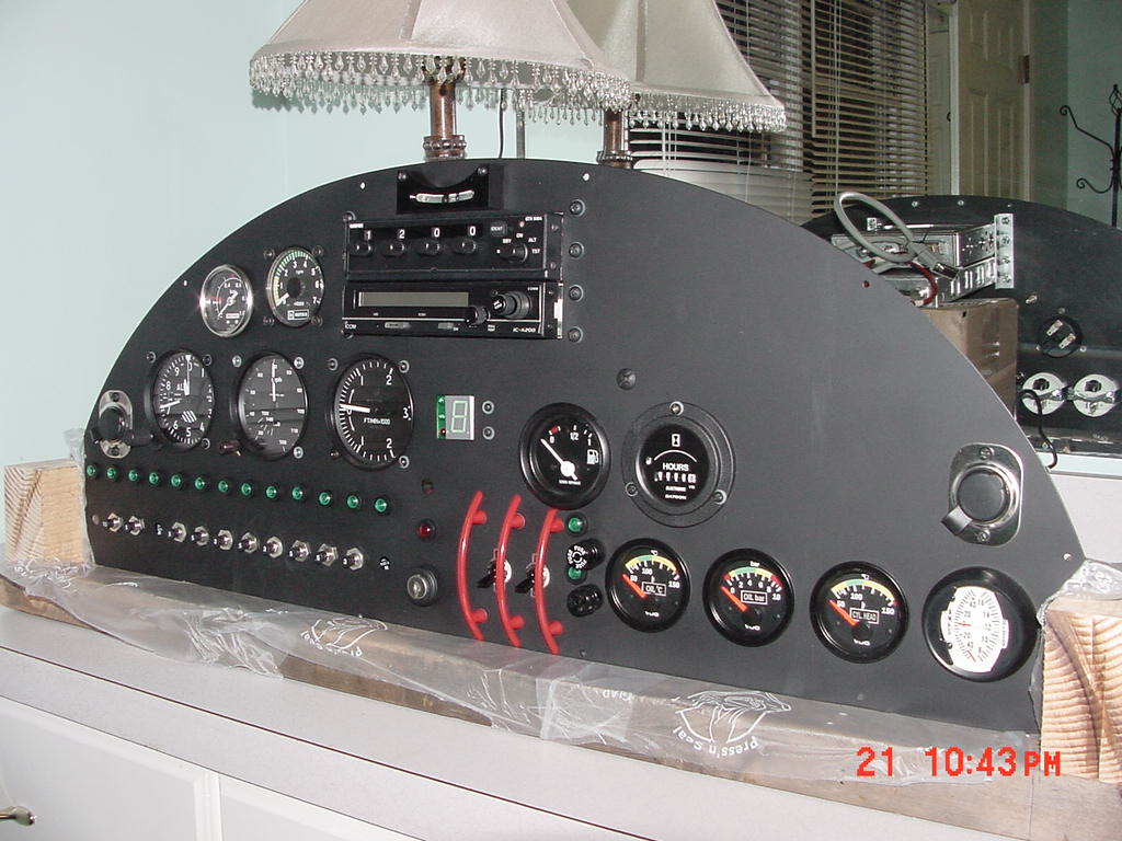 I received the blank aluminum panel in my kit. I designed and laid out all of my instruments using an Auto Cad program and had the openings for all the instruments and avionics cut on a laser machine. I still have the drawing. I will look to see if I can give you the panel thickness as well as the outline of the blank panel. If you cannot get enough measurments off of your old panel to duplicate it, I’ll try to measure mine. As you will see the top and ends of the panel are a compound curve. I’ll get back in touch with you. As a matter of interest, attached are a few pictures of my panel.