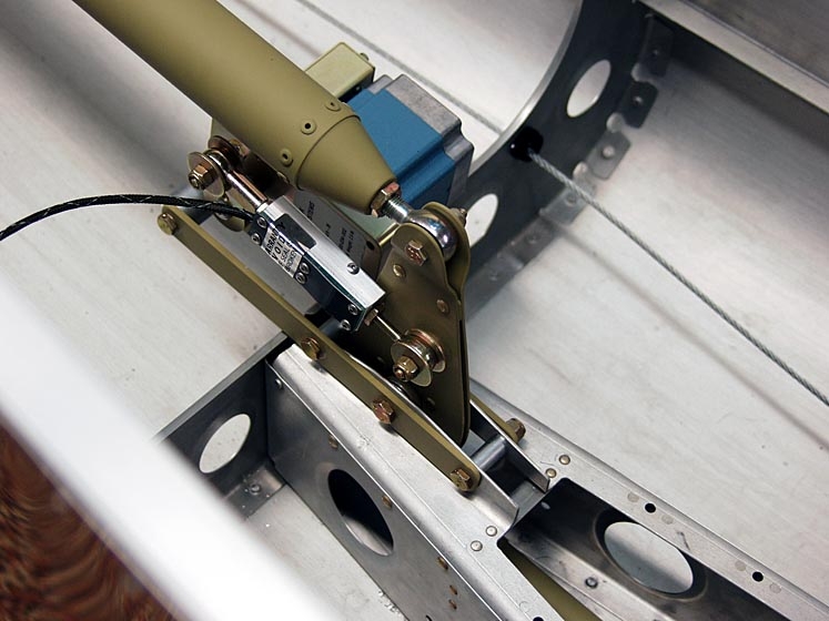 The special linkage between the stepper motor and the pitch axis bellcrank is a strain gauge that provides feedback to another electric box from TruTrak that controls the elevator trim tab. When the strain gauge detects pressure on the elevator because of an out-of-trim condition, the device will automatically feed in trim to compensate and reduces the workload on the pitch axis servo. This function is wired in parallel with the normal electric trim button on the stick that the pilot uses so the trim input from the system can always be overridden. They call it their "Failsafe Automatic Pitch Trim". I believe that it only works in conjunction with the autopilot engaged, however. It would be cool if would also auto-trim for different power settings when the autopilot was disengaged.