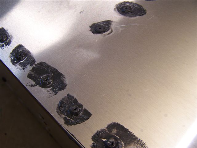 The ring around the ACS cap had six indents that I used to drill out for the rivets. I then eyeballed it and drill six more holes (for a total of 12). I then ProSealed and riveted the cap to the tank.