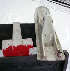 Picture 1. These skis are no doubt foam cored as they are quite stiff and weigh a lot less than the wheel and tire they replace.