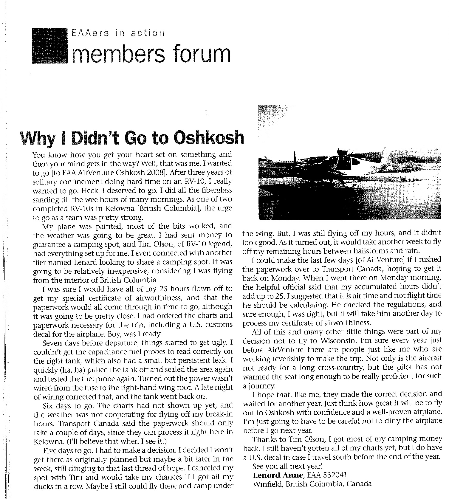Sport Aviation Article by Lenord Aune