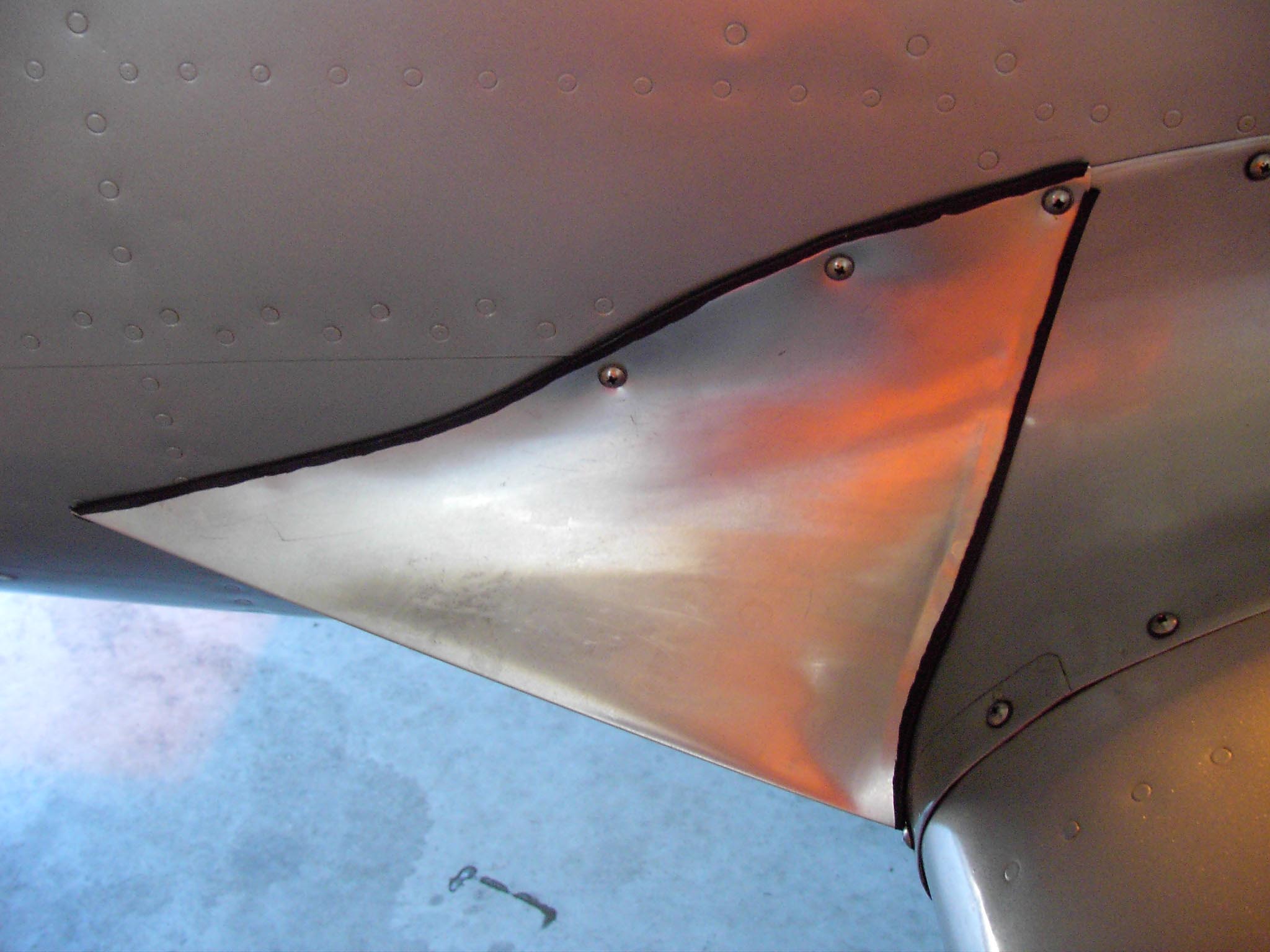 See attached, pix of my Leading Edge Root Extensions (LERX) prototype. The design is based on tuft testing of airflows and the purpose is to help keep exhaust fumes down under the fuselage, along with the exhaust tip extensions and stub fairings I make.
