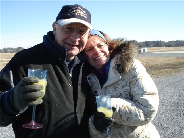 Get the airplane put back in the hangar and prepare to celebrate - Alane calls my mother then hands me the phone after a pre-brief.