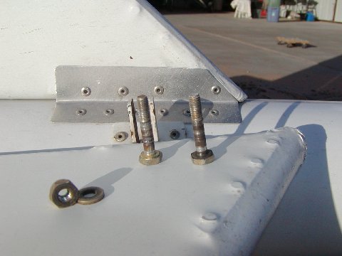 Regarding the grooved bolts I mentioned: Back in late '07, after I had owned the FS for a couple of months, I was rehearsing the fold up procedure and noticed the bottom 3/16" bolt that holds the flying wires was grooved out about the same amount as the ones I replaced last week. At that time, the only engine ever on the plane had been a 503. Since that bolt and the top ones I replaced are castle nutted, and unless they are snugged up a bit tight, they are going to spin. Since it also hapenend to that bolt, that wear pattern can develop with either engine. It could be the spin of the bolts that wore the grooves in both cases, but I don't know for sure.