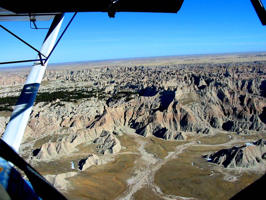 Today was another great day and my wife wanted to go fly some place so we went to Cedar Butte in the Badlands to scout some pathways to climb to the top of it. We neglected to take any pictures of it – the top looks like a runway and a crosswind runway – but we took some pictures on our way to Wall Drug for lunch.