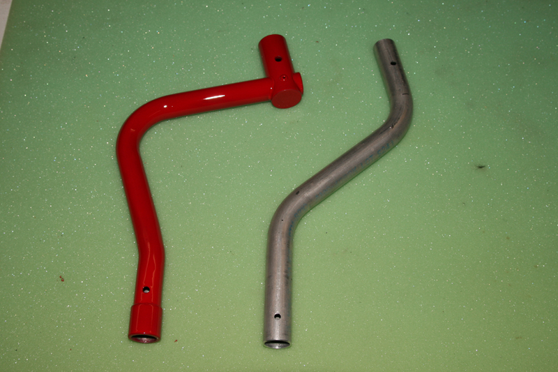 After being inspired by a friends Schweitzer (helicopter) control stick I decided to design and fabricate new control sticks that would keep the grip in the same location as the stock grip but have absolutely no contact with the seat in aft positions. After finally talking a local tube bending machine shop into taking a crack at it (without a minimum order of a 100 sticks) here's what I came up with. Our new grips were a few inches taller than the generic stock grips so I was able to modify them to have the stick enter through the front instead of the bottom thus lowering the grip an inch without lowering the stick. Shot it with an etching primer and an auto urethane to match the plane powder-coat.