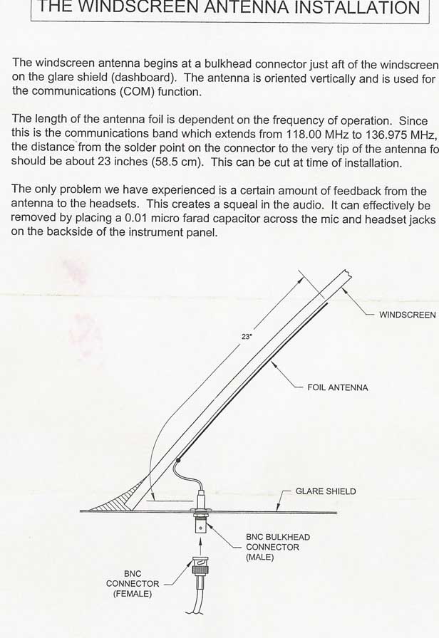 I mounted the low drag VHF comm antenna in the canopy for use with my #2 radio. I have a bent whip on the belly of the plane for my #1 radio. I glassed it to the inside of the canopy top, just aft of the right door. This antenna is supposed to be vertical as much as possible and that is the best place I could find an almost vertical 23" surface. After sanding, filling and painting it just disappeared and looks great. I hooked it up to my VHF handheld and have been listening to airline traffic in and out of Boise from my garage... as far as I can tell it works great. Fiberglass does not blank VHF transmissions - however I believe certain exterior paints (metallics?) might have some effect. The reason I did not want to use this for my primary radio is the considerable blanking you get from the aluminum portion of the fuselage, but it should be fine for a backup.