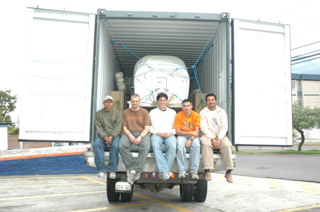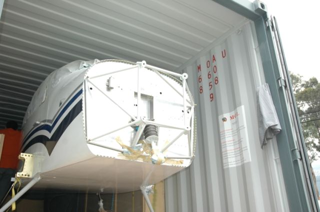 Since we’re on this subject, here’s a couple of pictures of our “truck” packing. Everything was in crates except the fuselage and HS, then very well secured several ways. The width of the gear was a press-fit into the container, but it did fit. We just lifted it up and in, but ramps would be nice also if you can keep them from sliding or falling off.