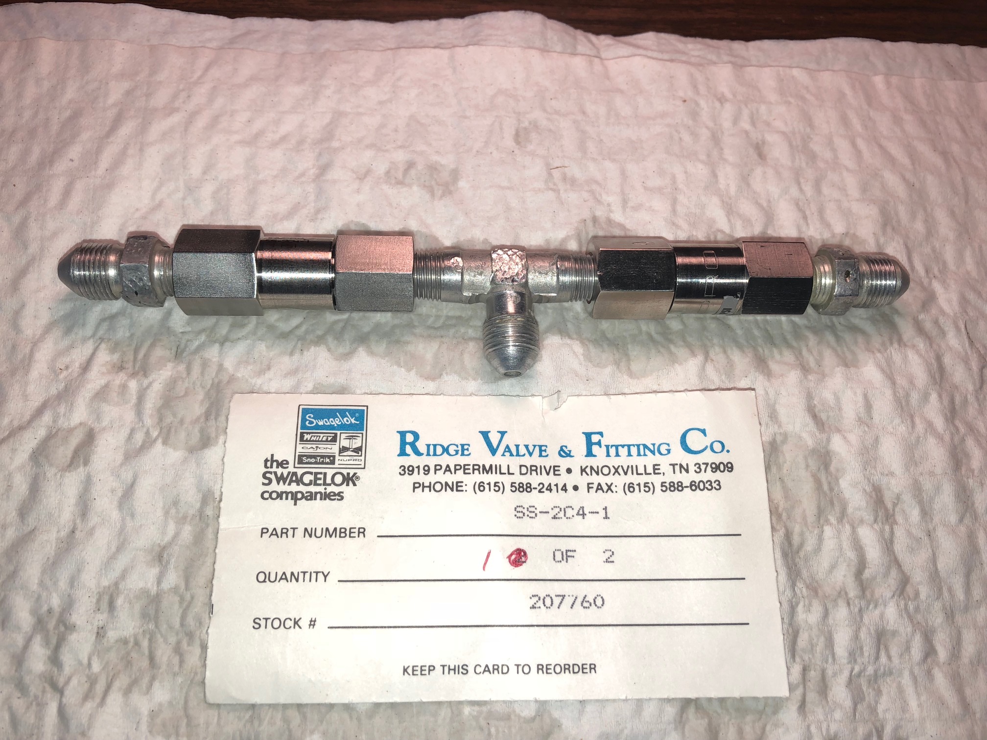 You could also replace all check valves with Swagelok check valves which are an easy drop in. Problems solved and no more fiddling with rubber discs/crush seals and bodies which loosen. All six for about $280. To me worth the price to improve health of pneumatic system. Old nipples with flare are transferred and work with a 1/8” NPT Swagelok. Part number is “SS-2C4-xx (last number is “cracking pressure” which is not critical, may be 1/3, 1, 10 and 25 , I believe). See pics.