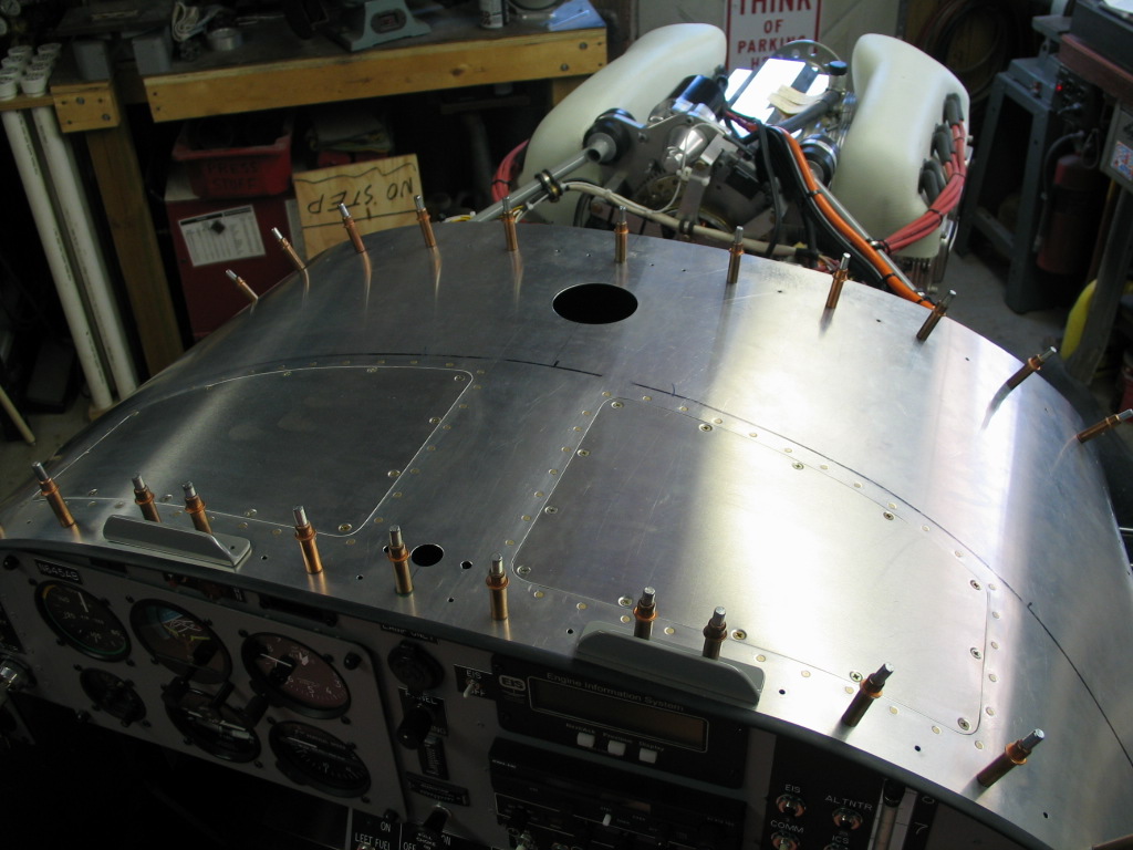 that looks pertty cool. I like it. I was thinking on putting the entire piece on nutplates so the whole thing would come off. Am I missing something that would not make that possible? I think yours maybe better idea becasue you don't have to remove the canopy. I am also thinking of cutting and trimming the "head chopping" sun leadge on the panel, and replacing it with a leather one like on Cessnas. I found a place that can custom make one for cheap price. ANy thoughts?