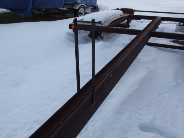 This segment covers the much requested tailwheel standoff. It doesn't lift the tailwheel off the surface, it only carries the weight to the trailer frame so your plane doesn't bounce on the tailwheel. I find it to be very effective. The straps are 20" long with the holes at 17" centers. The distance from the frame bolt center to the surface where the tailwheel sets is 3/4 ".