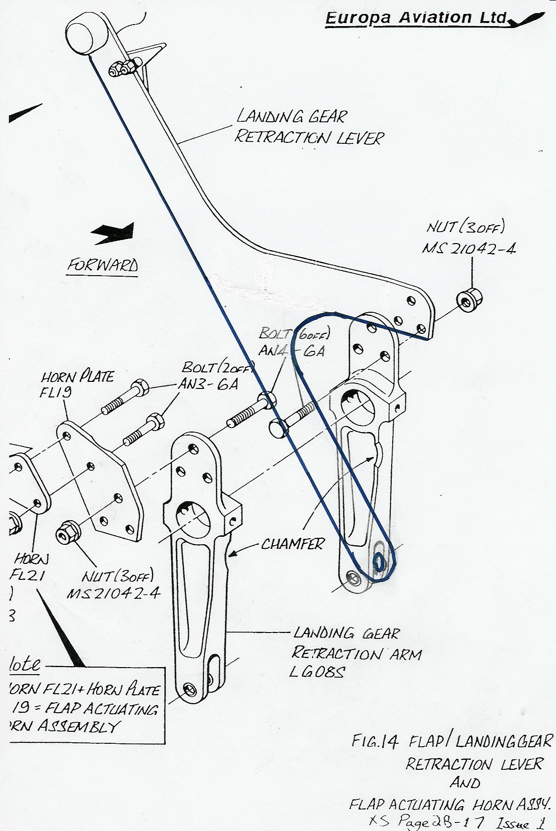 Page two of the mod begins: The strut will not be absolutely straight but its sideways flexibility will allow this. I thought not to allow any flexibility at all. Neither the bending of the lower part of the landing gear lever could ever receive my green to go. Last but not least the moment arm to tranfer the moving forces to the three AN4 bolts seemed to me to long even with the proposed strut. The mecanism has also to work when the supporting bungee eventualy fails; and then friction forces are great.