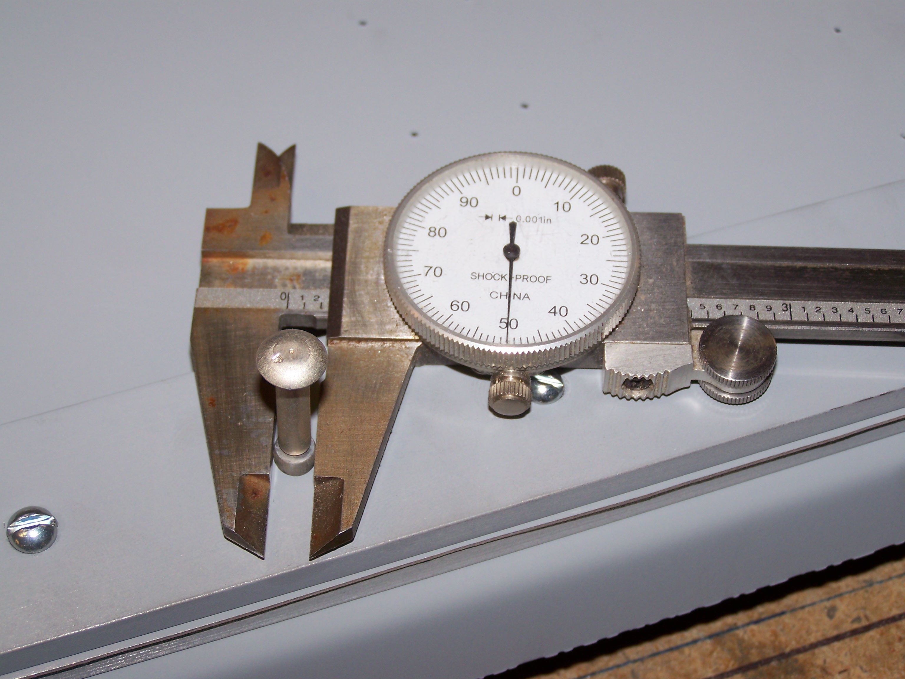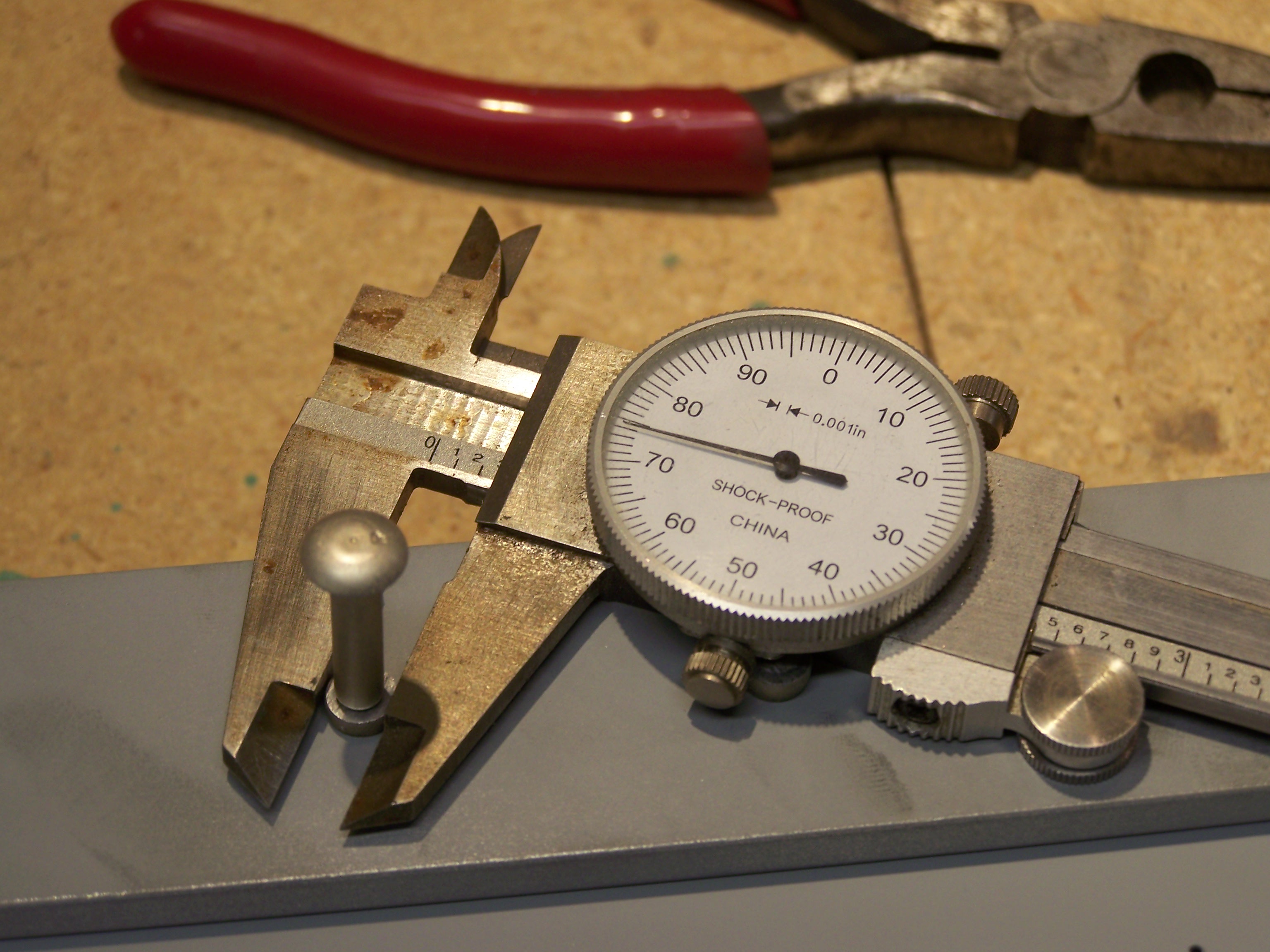 Picture's worth a thousand words. Here's a few thousand words. Most come to about .262. A few are up to .274 as seen and a picture of one of the bad ones .249, plus a side shot of the rivets for inspection of the heads. I placed a rivet on top in the pix to see the shank of the original rivet (.187). The holes have been reamed to .1895.