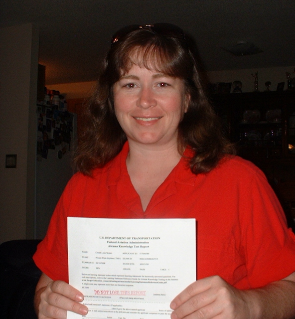 I just LOVE flying and am so HAPPY to have the opportunity (finally) to learn it and do it! This is me and my goofy grin holding that precious piece of paper stamped in red with "DO NOT LOSE THIS REPORT".
