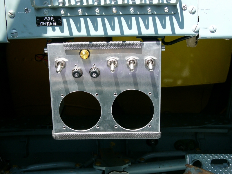 Thanks for the warnings, Mark. I did complete the circuit with a crowbar and a 2 amp breaker. I’ve checked the whole thoroughly before installing. But I also left in all the Russian circuits so that I always can go back easily to the Russian system. In attachment you can see the small console with the circuit breakers (2 amp for overvoltage and 15 amp for the whole circuitry). The circular openings are for a Becker radio and a Garrecht Mode S transponder. I’ve chosen to build a separate console, so that I always can restore to the original system.