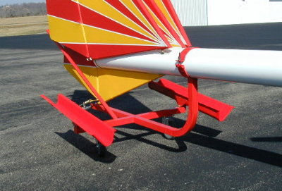 But that was not the problem. The I beam aluminum trailer was quite stiff and the axe placement was far aft. The stock 3500 lb torsion axle was replace with a special 1500 lb torsion axle. The trailer hauled as smooth as silk. The problem was on an open trailer the wind moving across a backwards Kolb beats up the tail feathers. I guess it is the reason that seagulls always stand Beak to the wind.