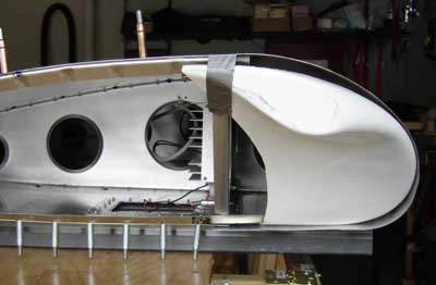between the skin and the fiberglass that resulted at the nose. Filled it in