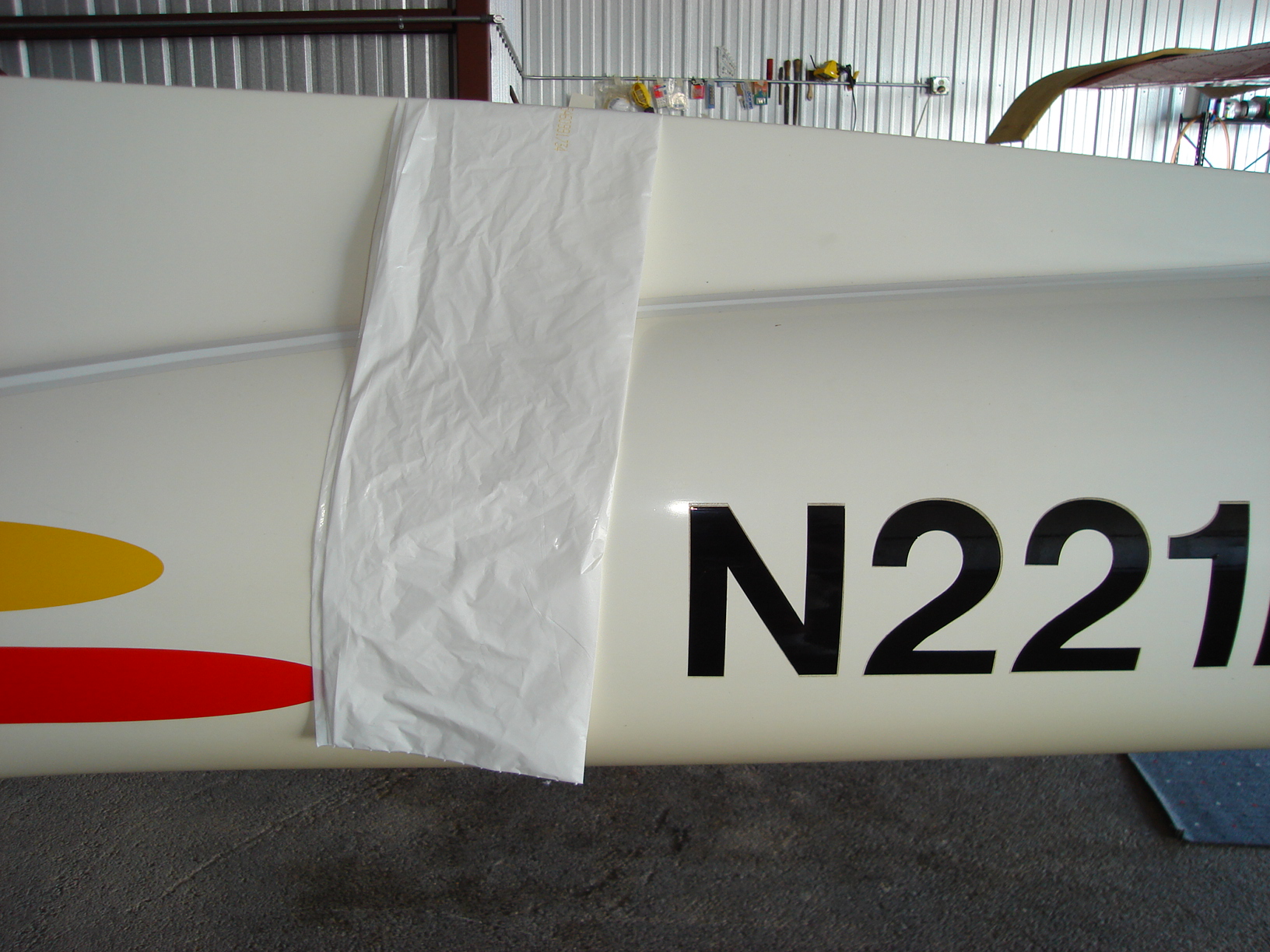 Attached is a photo taken yesterday of the aft fuselage with a white plastic garbage bag next to it for color comparison. It appears that the "white" of the fuselage is darkening a bit over time.