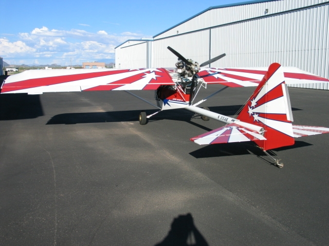 G-meter, Icom 10 channel radio, intercom, Garmen 195 GPS, fused hot box, new 6x6.00 tires, self sealing tubes, beefed up landing gear, Matco brakes, clear "D" cell, balanced ailerons, trim, G5 grip, 3 blade Warp Drive prop, 16 gals. fuel (3.5 hrs.), 2 fuel pumps, Navman fuel flow meter, TNK adjustable horizontal stabilizer bracket, full swivel tailwheel, Registered ELSA (N515AB), TT A&E 780 hrs.