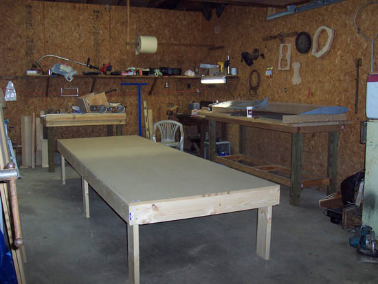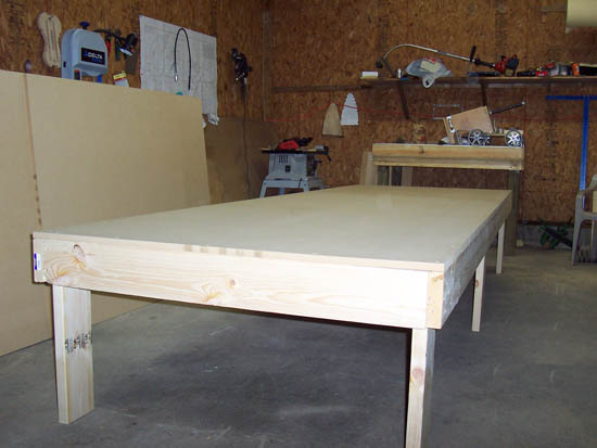 I started out with an 8 foot table and extended it to 12 foot when I got to my wing spars. Whatever frame design you use, the 3/4 MDF works great as a table top. You can easily drill and cleco parts directly to the table.