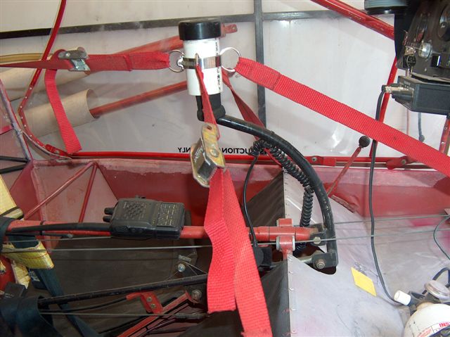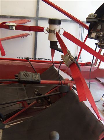 Here are some pics of my little invention - "The Spider." Best control lock I've seen yet. When in place and tightened, it feels like the control stick is welded in place. The MV guys liked it and some copied it. Someone modified the design but the modification didn't work as well as the original (heh, heh, heh - sorry, I couldn't resist.) I works a lot better than a seat belt and just takes a minute more to install. If you make one, a key point is to cut a groove in the PVC at each place the rings go, otherwise the rings will tend to flop over. If you make both the fore and aft straps adjustable, then you can set the elevator where you want it, up or down. Mine isn't adjustable so the elevator is locked in neutral. One of these days I'll change forward strap to an adjustable one.
