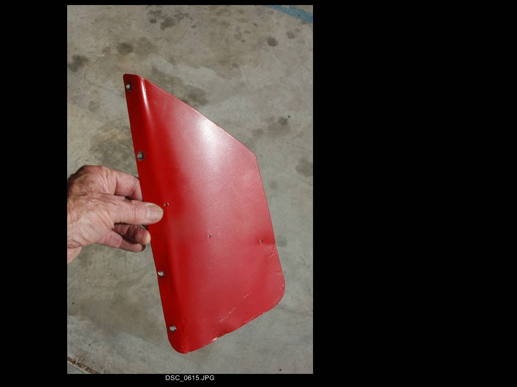 The huge rudder trim tab (12" tall and 6 3/4" wide at bottom, bent about 15 or so degrees to right as you face the cockpit, and riveted 22" down from top on the trailing edge pipe of the rudder)