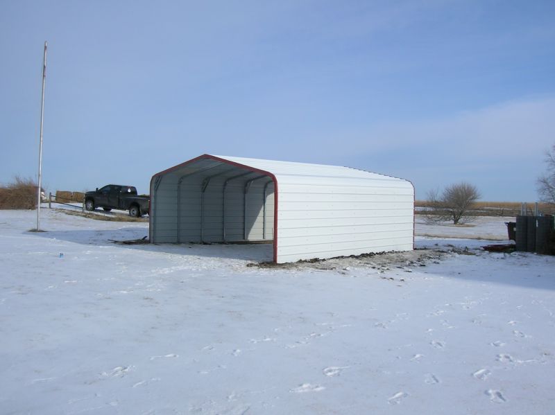 I had a Carports of America building installed in January. I'm sure you've seen them, they have dealers everywhere I've been this last year. Here in Kansas, the base price is $695 for the basic 10' X 18', but that's just a frame and a roof. I bought a 20' X 21' with full sides and an extra frame hoop and the cost was $1700. As I recall, enclosing one end would have been another $600. The frame is 3" square steel tube and the covering is 29 gauge siding. I was concerned about the thickness of the siding, 29 gauge is only .014", but during installation one of the workers was walking on the roof and there aren't any dents or buckles. It has stood up to 60 mph winds already this winter without problems.