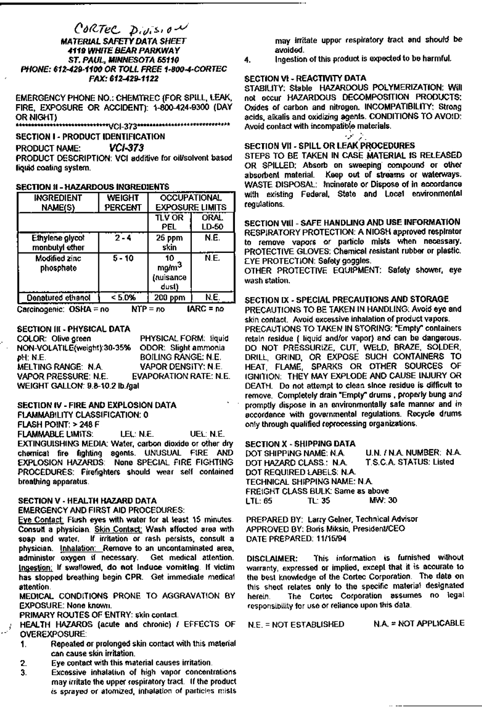[url=http://us.f362.mail.yahoo.com/ym/ShowLetter?box=Sent&MsgId=3224_7178189_421313_715_1450582_0_41582_1890235_1871791607&bodyPart &tnef=&YY=98913&y5beta=yes&y5beta=yes&order=down&sort=date&pos=0&view=a&head=b&VScan=1&Idx=0][/url]This is what I found in our system. I do not know if it is the same VCI-373 that they shipped me... I also am awaiting approval for access to the MSDS's at the Cortec site.