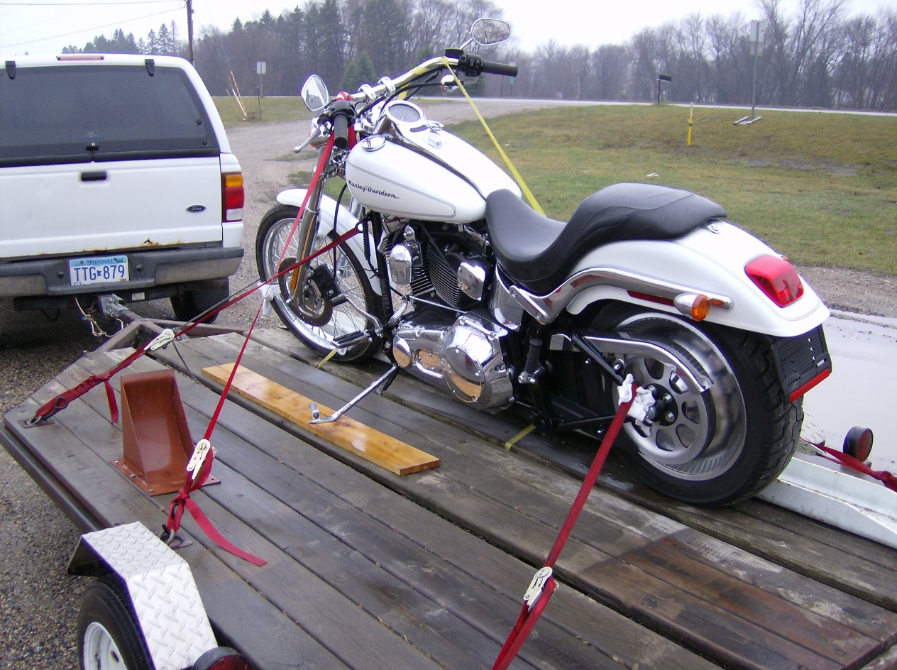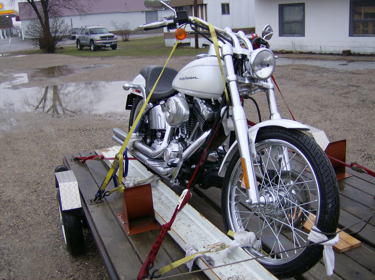 My new Flying machine on it's way home in the rain....( Soft Tail Deuce )