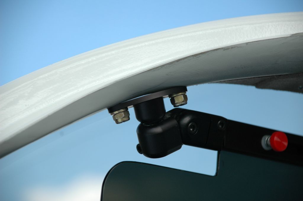 The base on the visor will mount on the bottom of the “roll bar” part of the cabin top, just where it gets down to the narrow part where the door and the windscreen converge. The part is rounded and the base for the visor is flat. Is there any interest in possibly getting a machined base that fits more comfortably, or do people just want to go with the normal flat base. Again, contact me off the list and let me know your desires. The timing on this seems to be great, although the different shapes and sizes of visors make the final decision much more complicated.