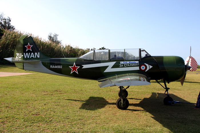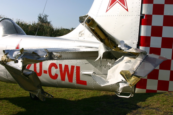 "ZU-CWL (cn 822107) The tail munched by the prop of another Yak 52, ZU-WAN during a Yak formation flying course. This happened at the holding point and no one was injured."
