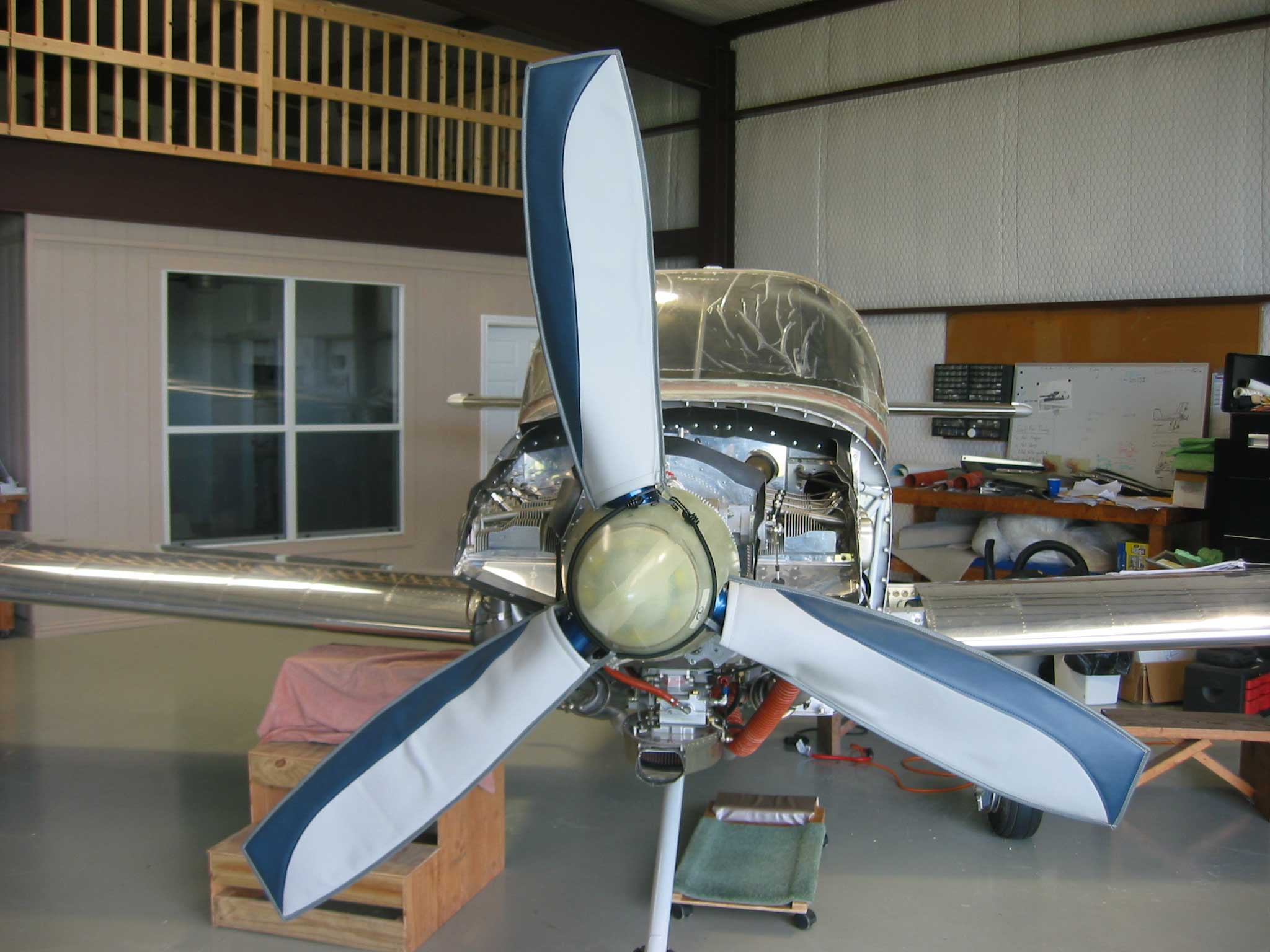 I have a 3 bladed Aercomposite prop and I had the fellow making my interior make me a set of blade covers for when I take the cowling on or off, see attachment. I saw where some of the 3 bladed props had dings from the cowling removal. It might be worth considering for anyone with more than 2 blades.