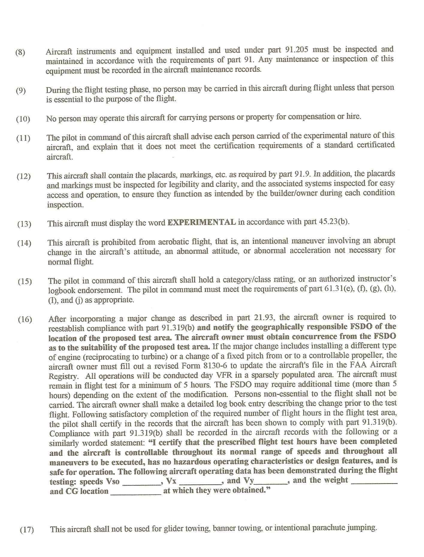 being used) of flight testing before you can carry passengers or leave