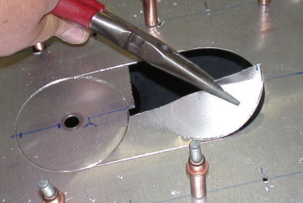 | Removing metal that was scored with a hole cutter. |