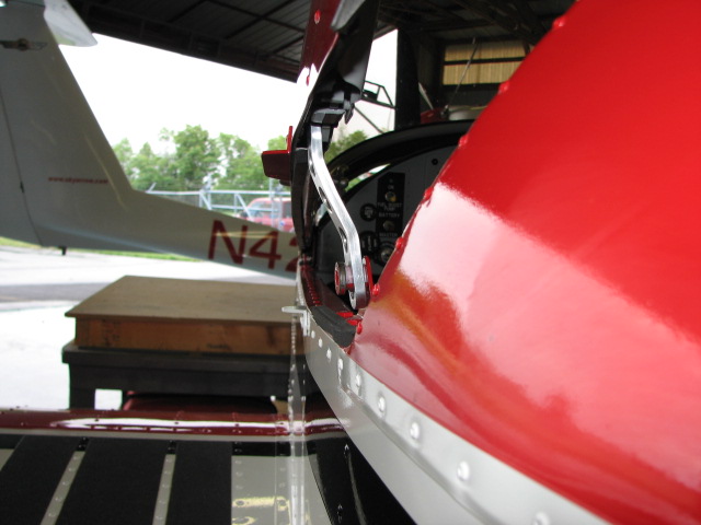 A few days ago someone asked about holding the canope open when they taxi. Here are a few pics of the link I made. It holds it open and will not let it flip up in a tail wind. If there is any interest in them I might make a limited number. It is for the forward tilting canope.