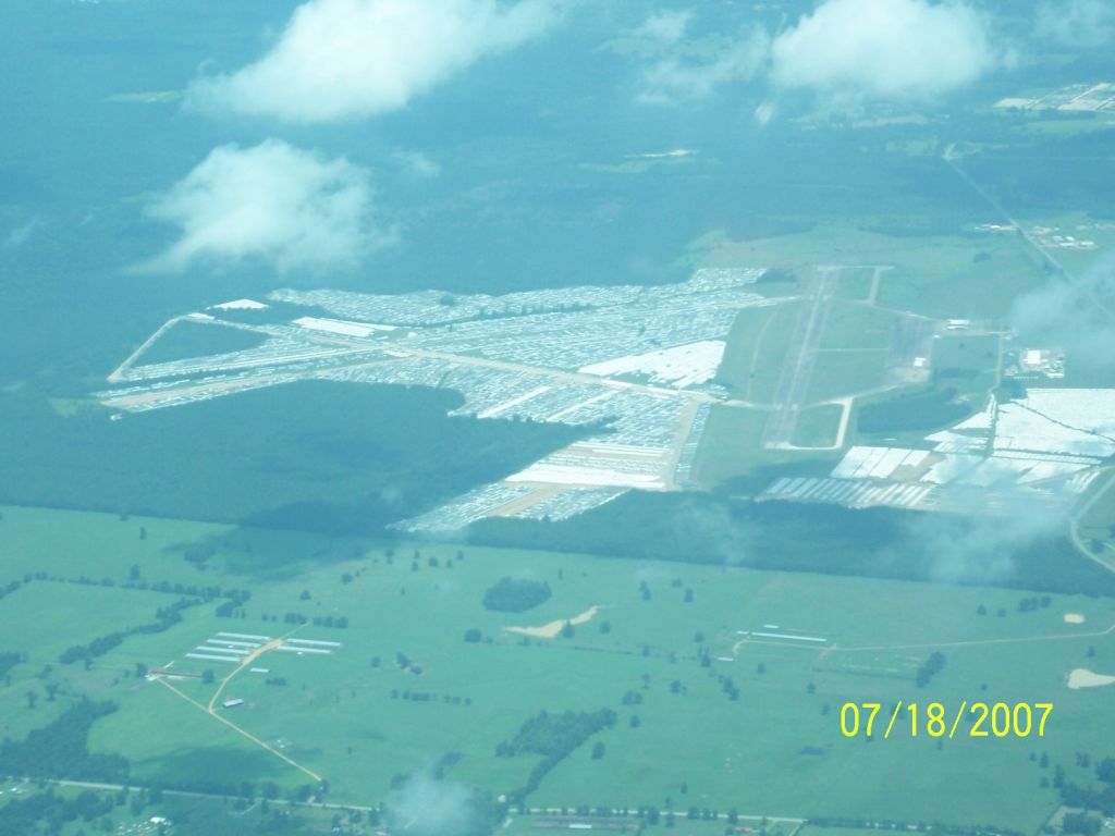 Hint: These are pictures of 13,000 furnished mobile homes parked at the Hope, Arkansas airport by FEMA for use in New Orleans whose zoning folks decided they would not met code. Roughly a half BILLION of your tax dollars at rest/work. (13,000 x 45,000) Pictures taken yesterday. They have been there since just after Rita so I'm thinking someday they will make great deer camps Wink